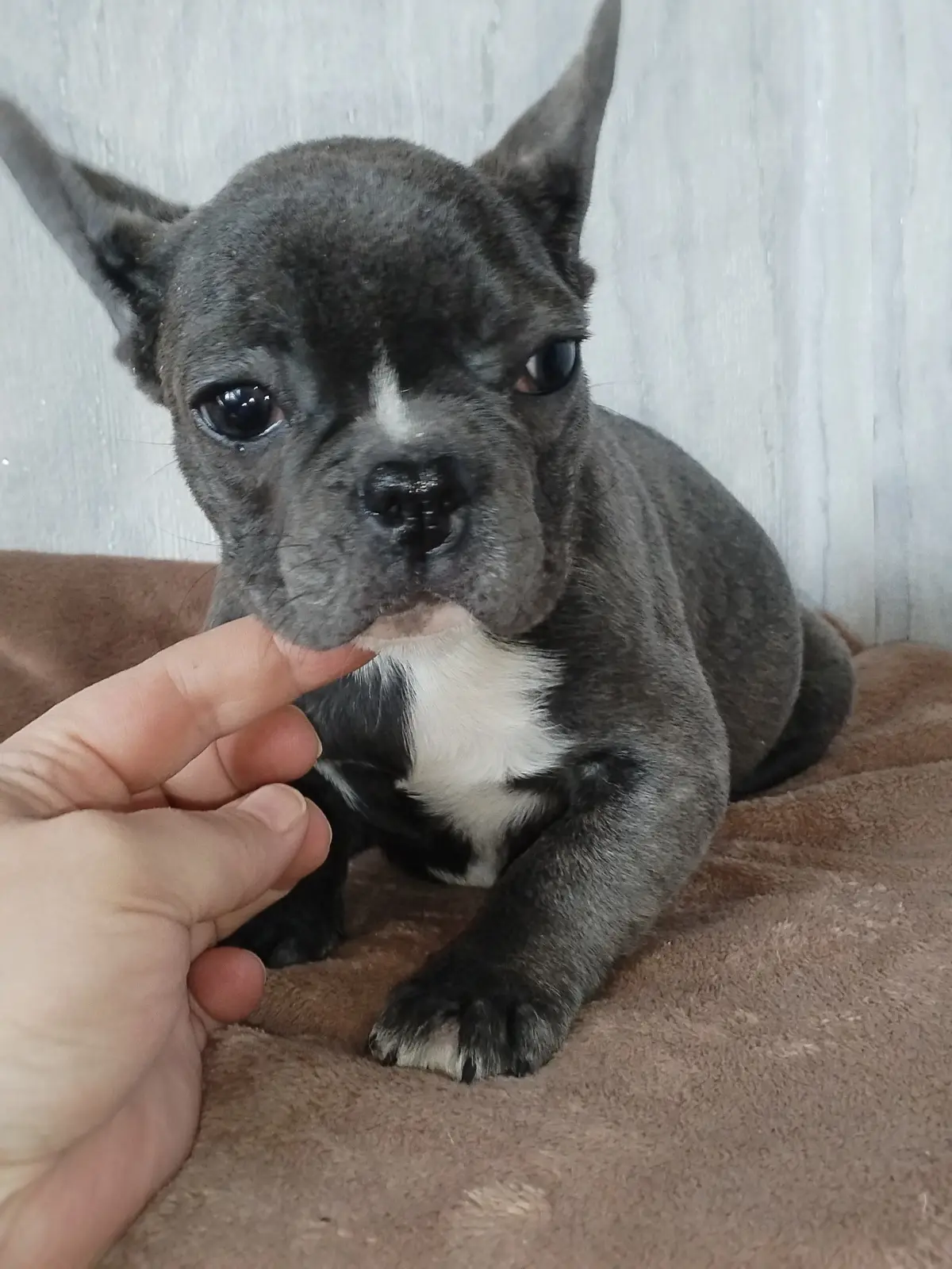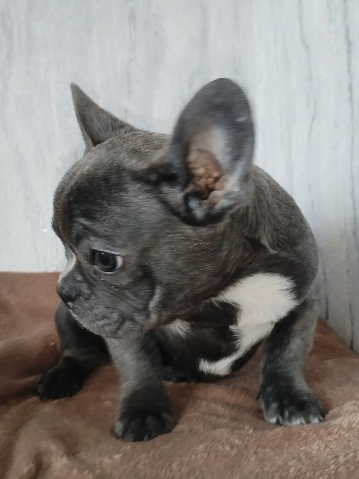 Щенок французского бульдога , девочка. Окрас голубой мерль. Полностью привита. Очень игривая, смышлёная, позитивная. Приучена к пелёнке. Дополнительные фото и видео вышлю по запросу в мессенджер. Доставка по договорённости.