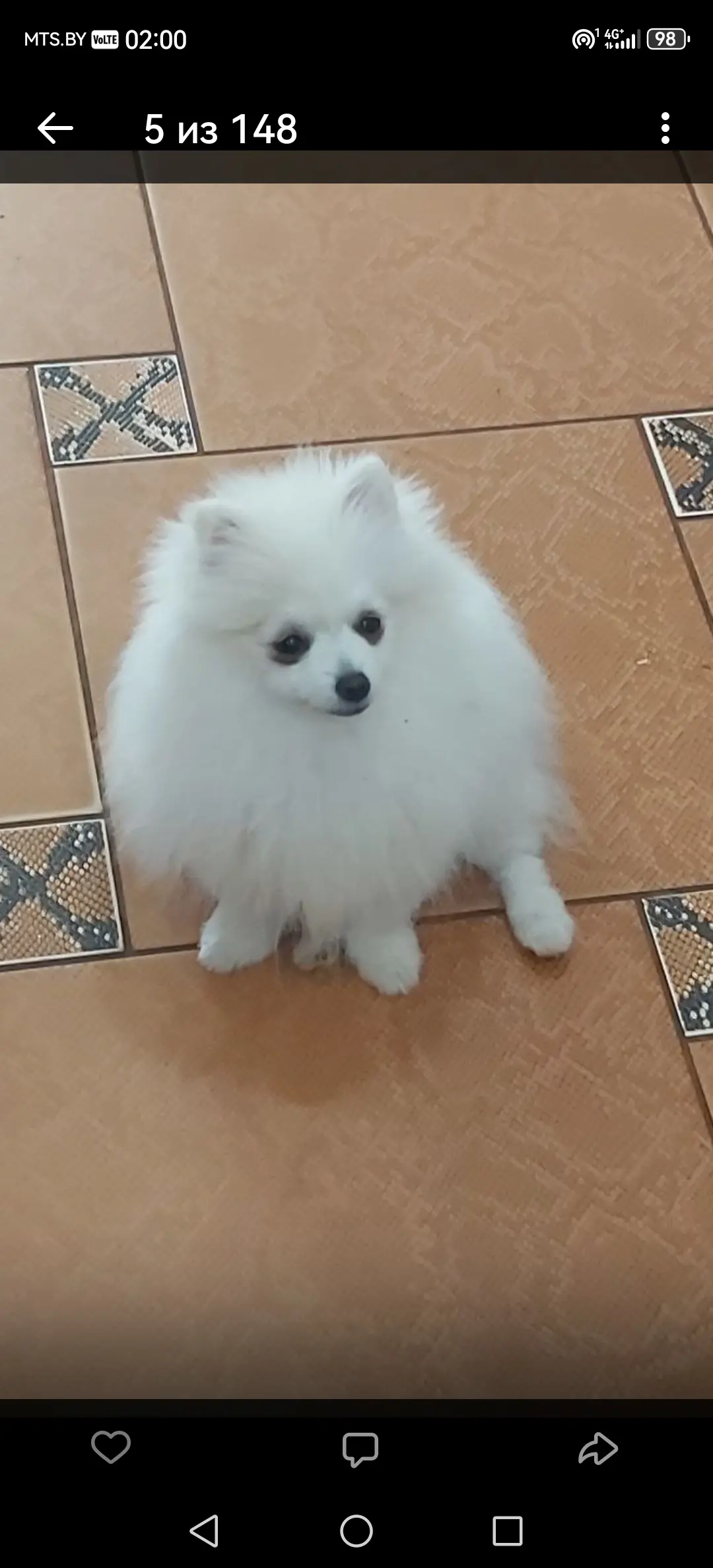 Замечательный малыш померанского шпица практически белого окраса(айс крем) .6 месяцев.Вес на данный момент 2кг. 100 грамм .Счас он в линьке(пырзик). Можно увидеть маму и папу.Привит по возрасту,обработан симпарикой, заведен ветеринарный паспорт.Очень ласковый и игривый, контактный.Приучен к пелёнке ,гуляет с удовольствием на улице.Безумно контактный дружит с котом и другими животными.